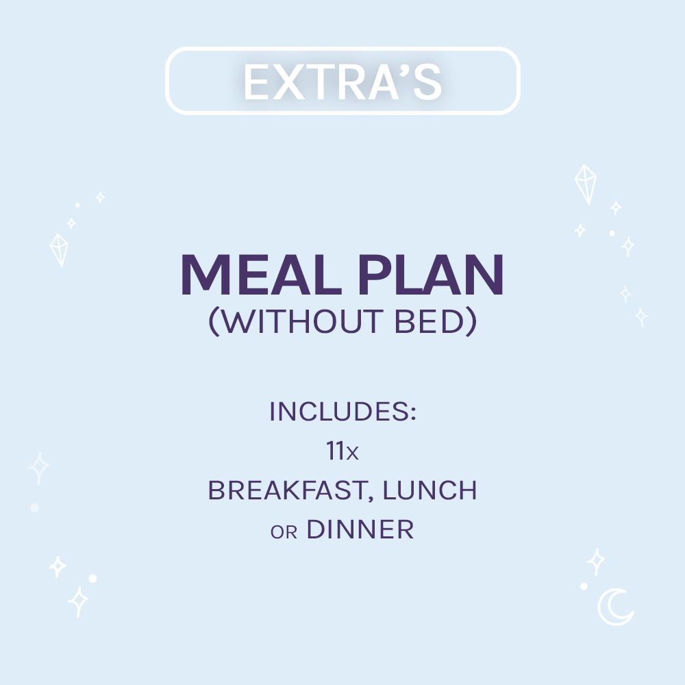 This is without sleeping place. This is only if you do not book a accommodation package (in that case the meal plan is already included in the price). The meal plan does not give access to the event, for that you need to book an event ticket.